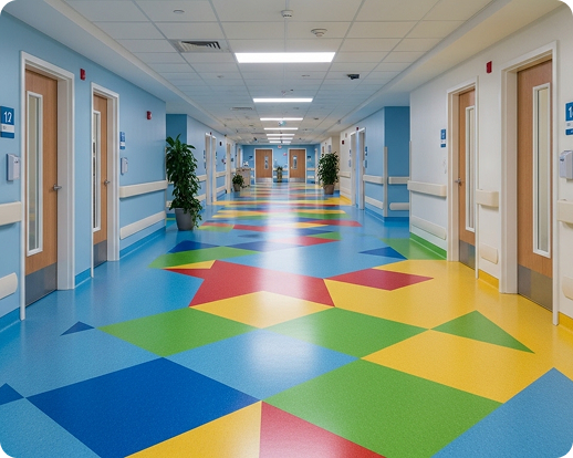 Tell us the requirements of each ward and hospital zone. We will bring the right flooring tiles.