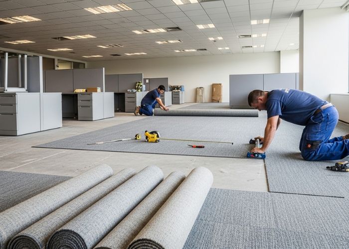 Our Team Provides Seamless And Quick Installation Of Carpets For Office Use