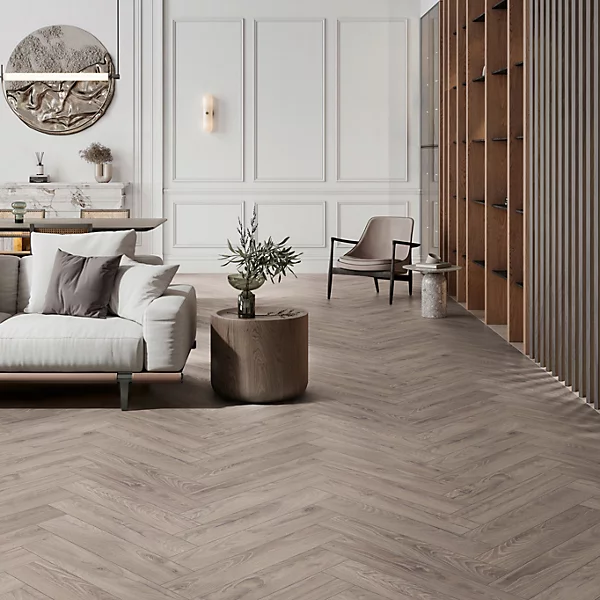 GoodHome Chesterfield Grey Natural Oak effect Synchronic Herringbone Laminate Flooring, 0.87m²