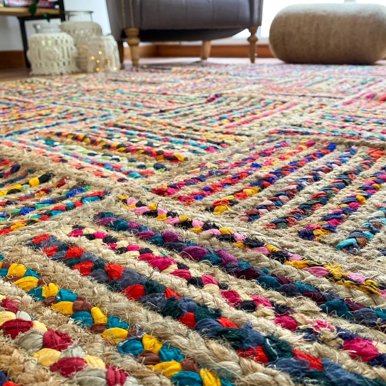 Recycled Chindi And Jute Multi-Square