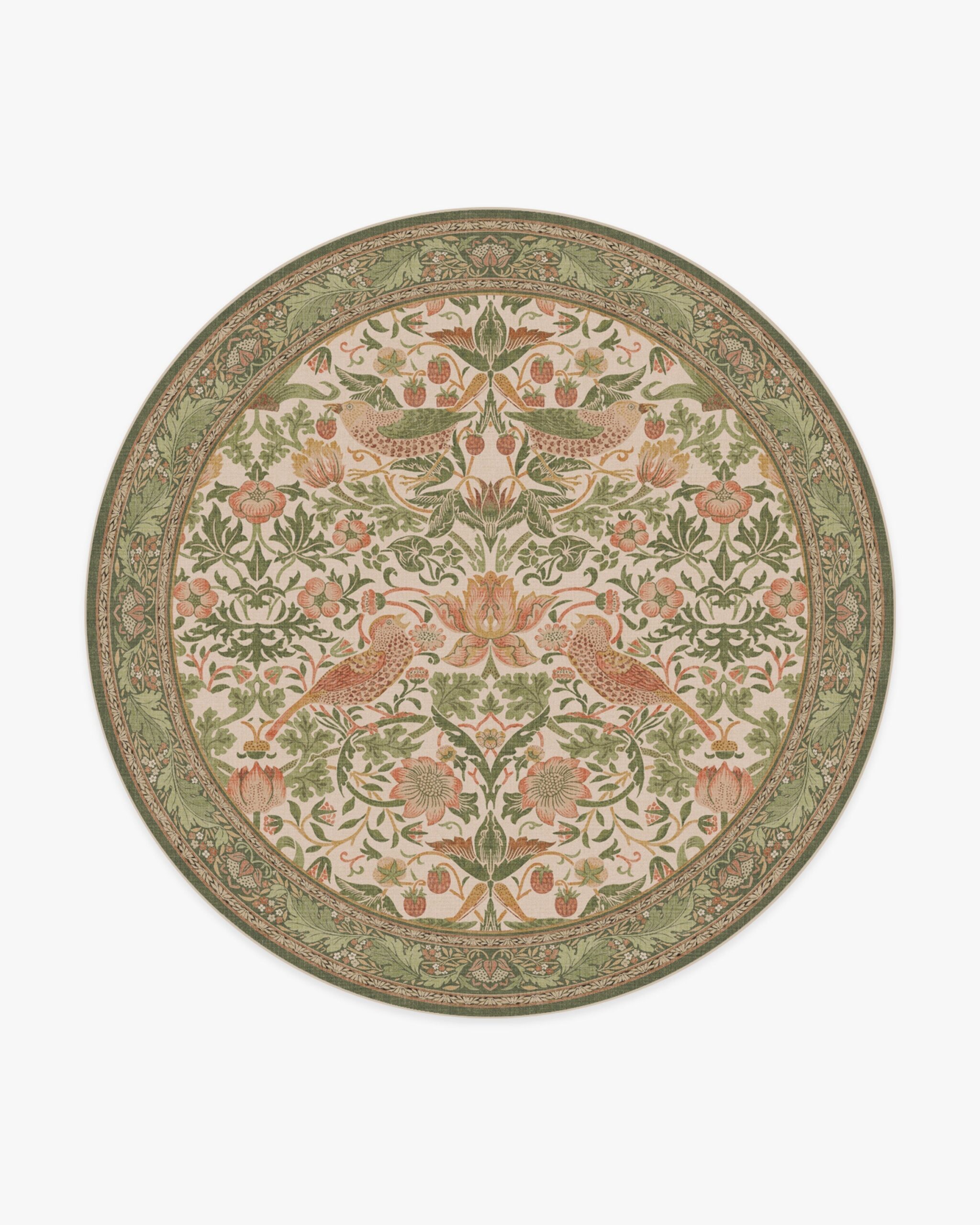 Strawberry Thief Sage & Rose Custom Round Carpet